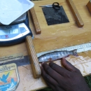 A Service fish biologist measures and documents a brook trout captured in Washington's Tyee Springs, which is the main water source for Carson National Fish Hatchery. Scientists with the Pacific Region's Columbia River Fish and Wildlife Conservation Office, Abernathy Fish Technology Center, and other partners are using YY brook trout males (which have two YY chromosomes) as a biological control strategy to eradicate the invasive brook trout from Tyee Springs since they pose a threat to the hatchery's spring Chinook.