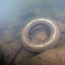 Car tire on river botton