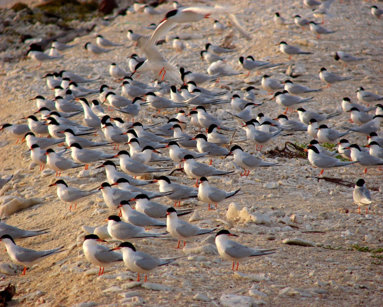 Caribbean roseate terns on nesting grounds