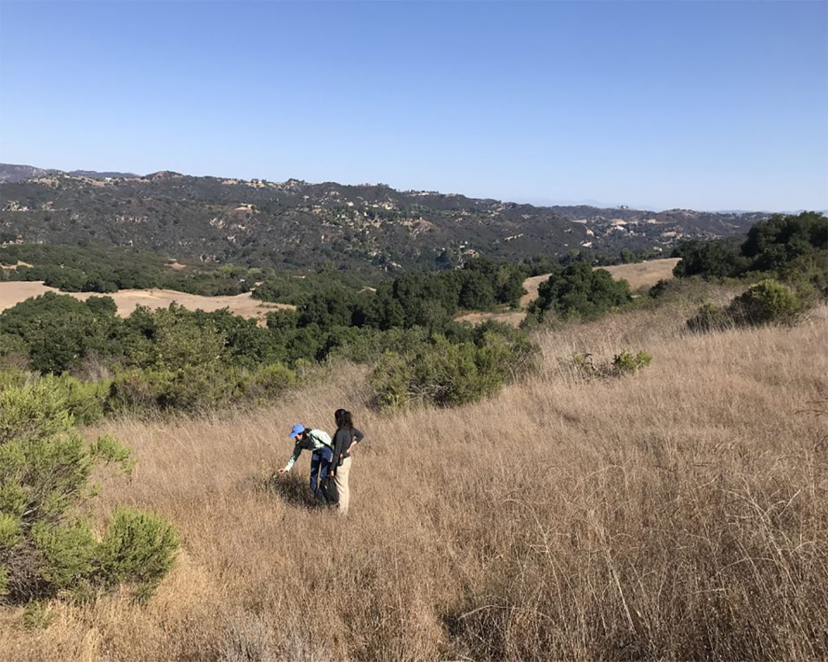 Carly (left) at Topanga State Park surveying for milkweed. Photo by Anja Clark