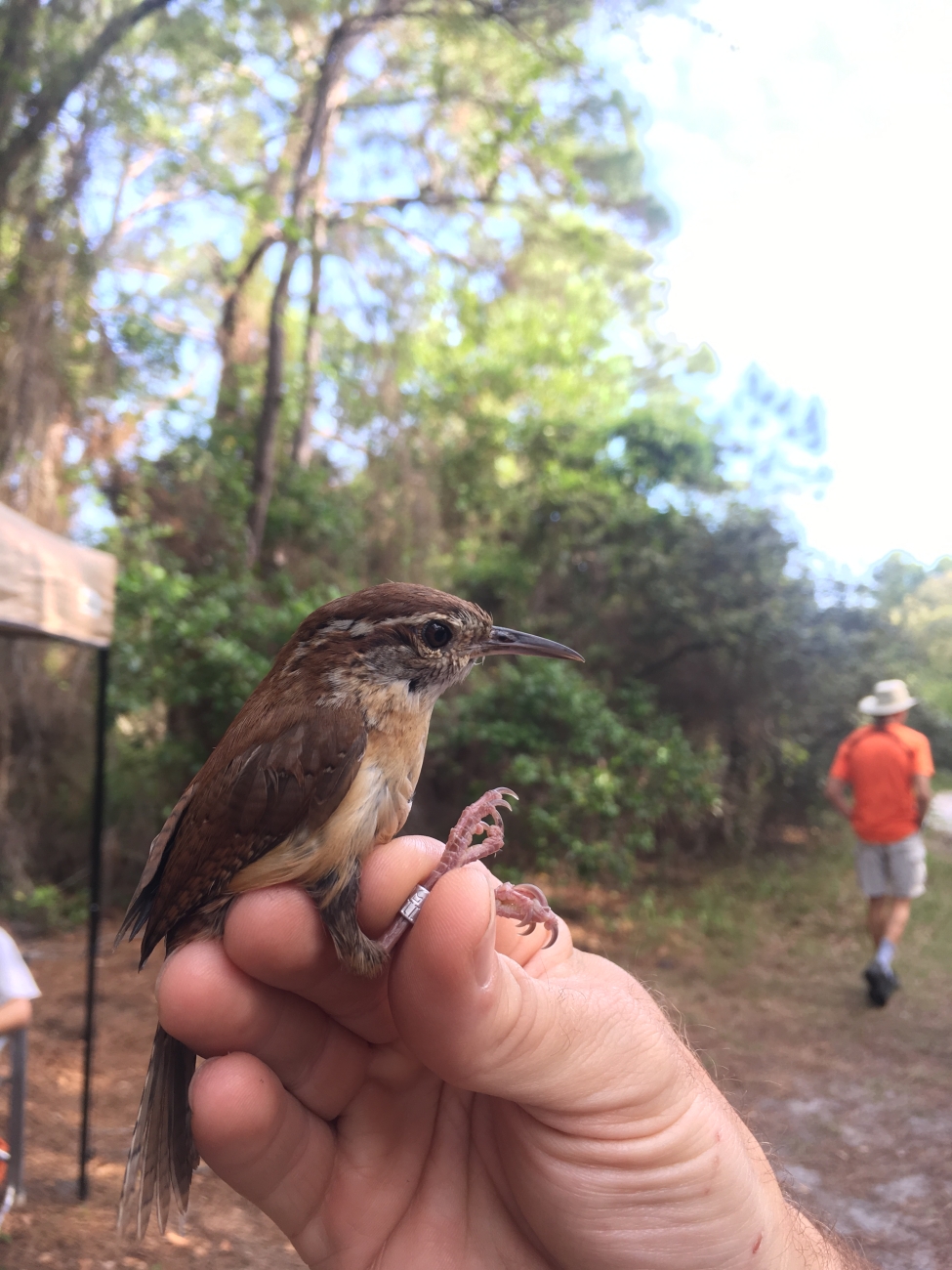 Carolina Wren banded at research station in coastal Alabama, a major migration route for birds.