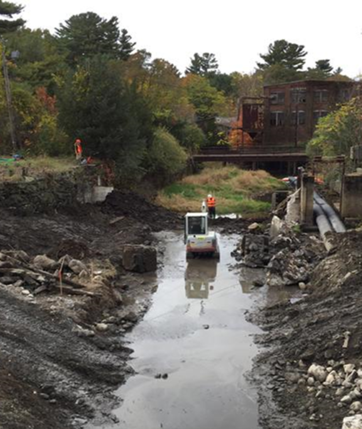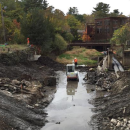 Workers removing the Carver Cotton Gin Dam on the Satucket River.