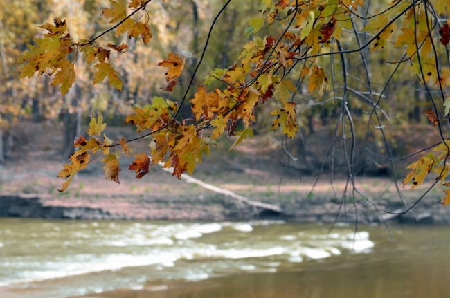 Low water levels reveal the Carver Rapids on the Minnesota River.
