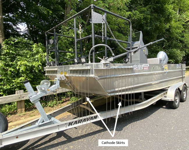 Cathode skirts installed on the bow and sides