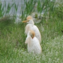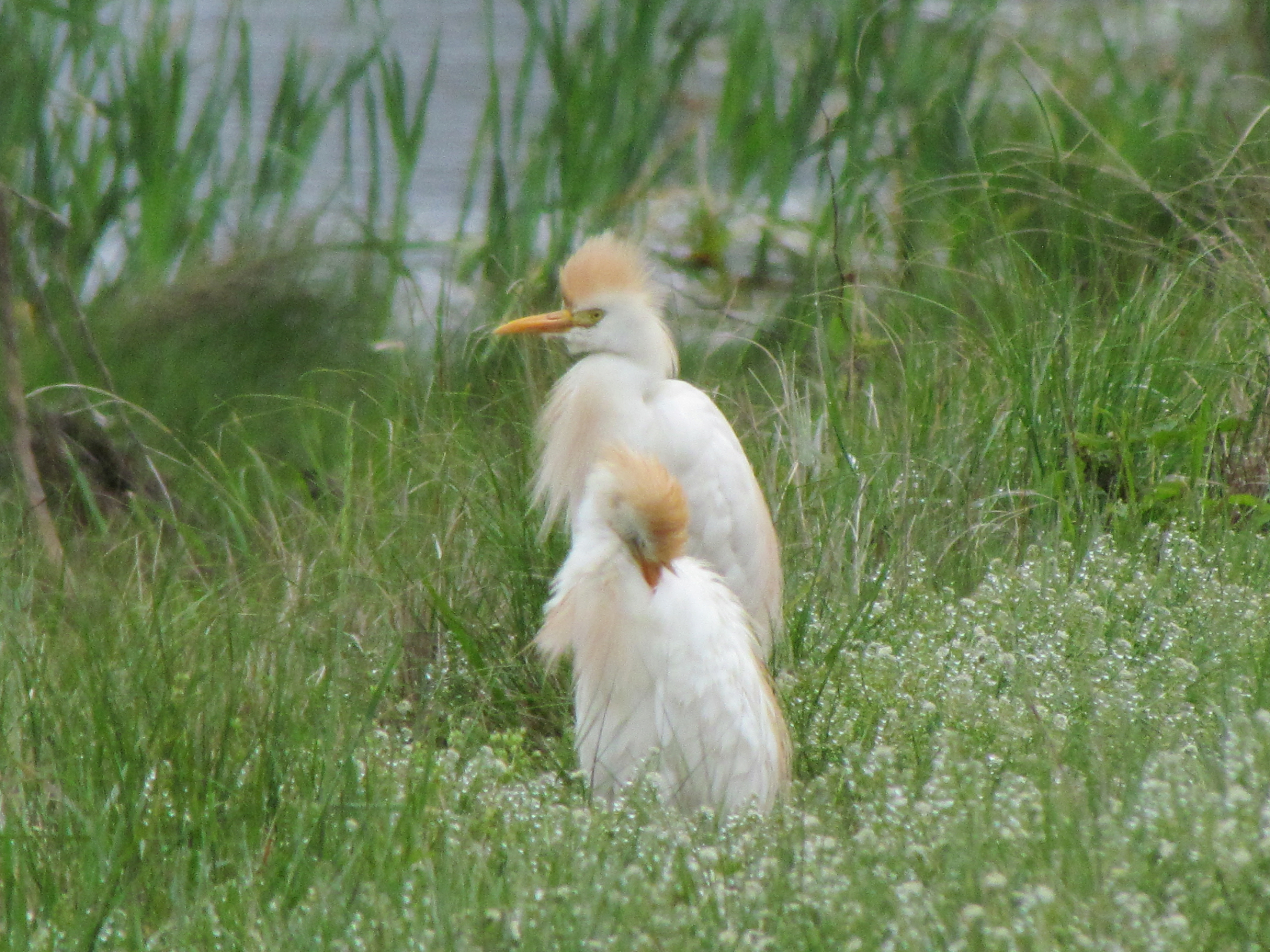 Cattle egrets in a grassy area at Chincoteague NWR.