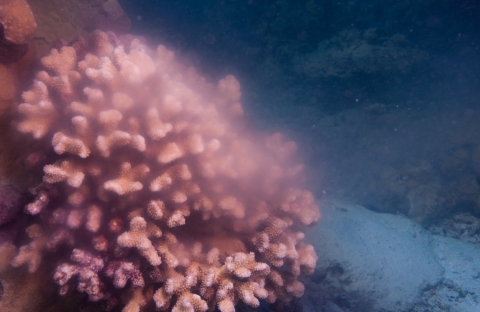 Spawning cauliflower coral (Pocillopora meandrina) within the Shark Island lagoon, French Frigate Shoals, part of the Hawaiian Islands National Wildlife Refuge and the Papahanaumokuakea Marine National Monument.