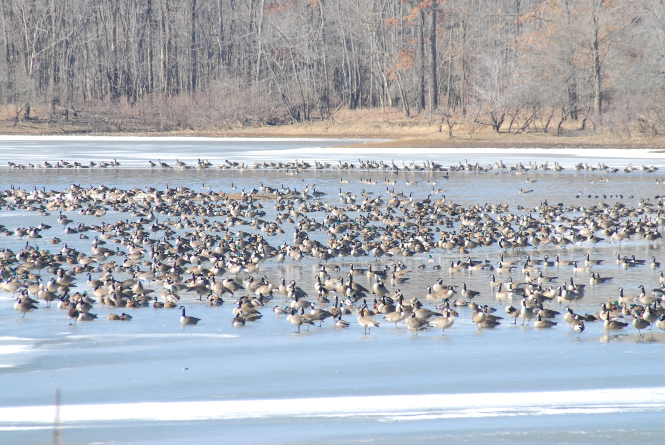 A large flock of waterfowl take advantage of an undisturbed sanctuary area in Cross Creeks NWR.
