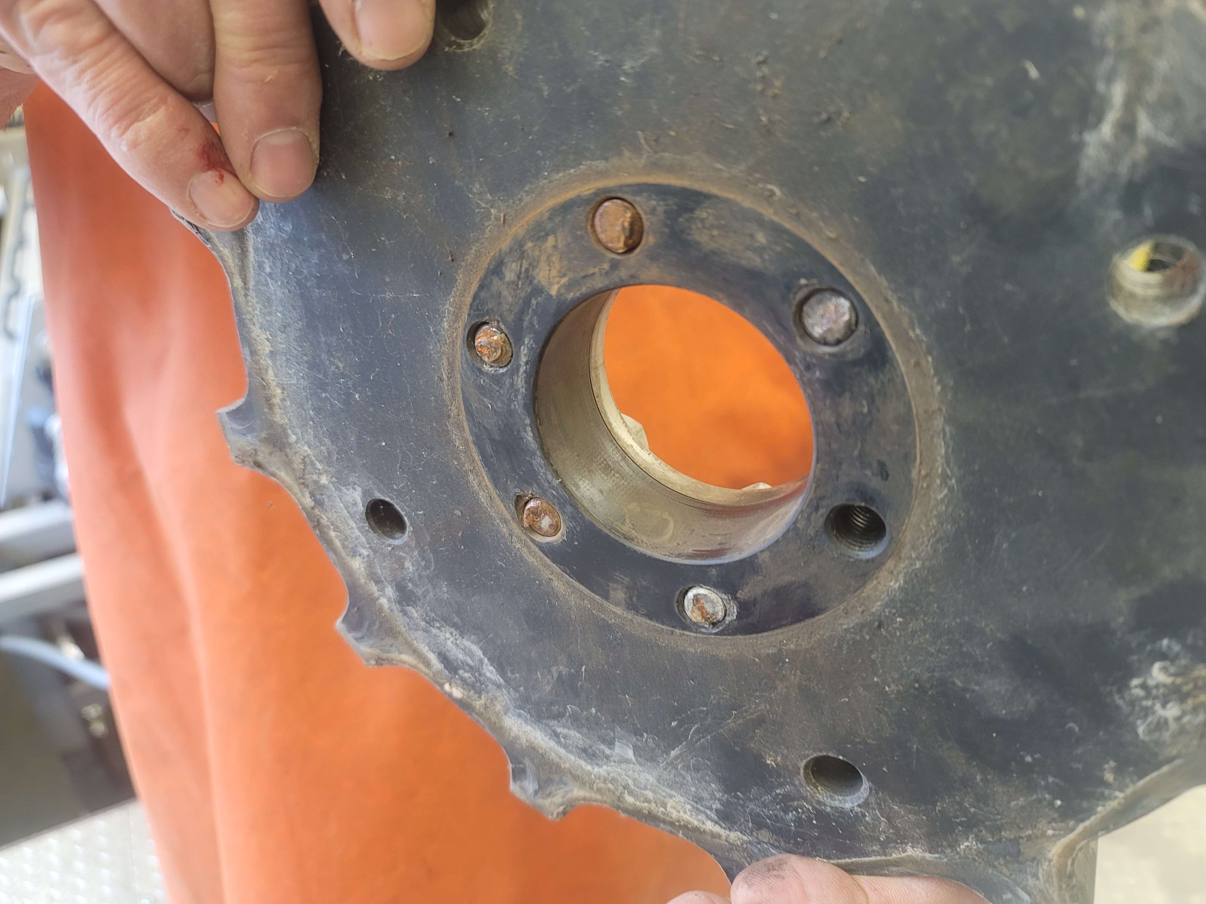 The hatchery's secondary drum filter chain drive gear sprocket with all 6 bolts sheared