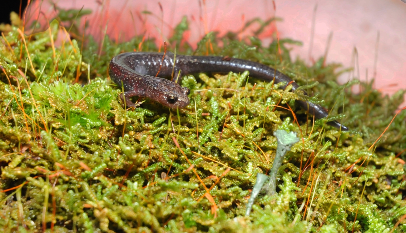 This is a close-up view of a Threatened Cheat Mountain salamander at the refuge.
