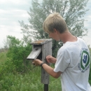 YCC Youth checking bluebird boxes for nests.