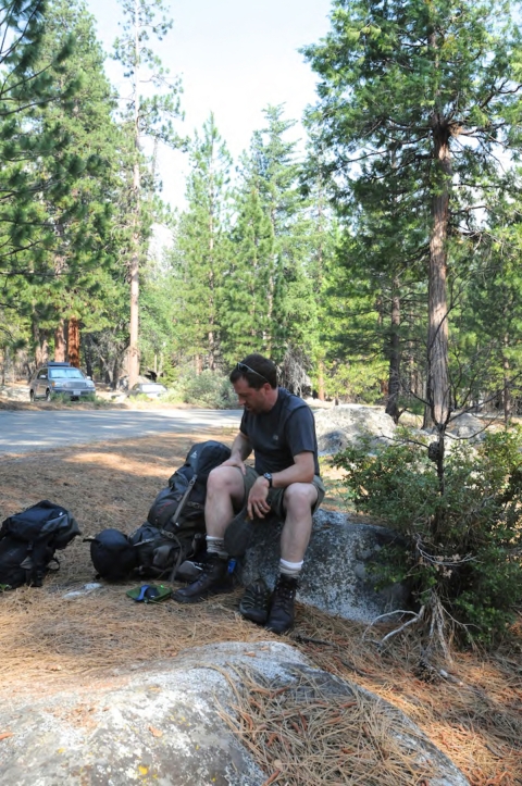Checking over gear before hike. Hiking to Center Basin through Sequoia and Kings Canyon National Parks