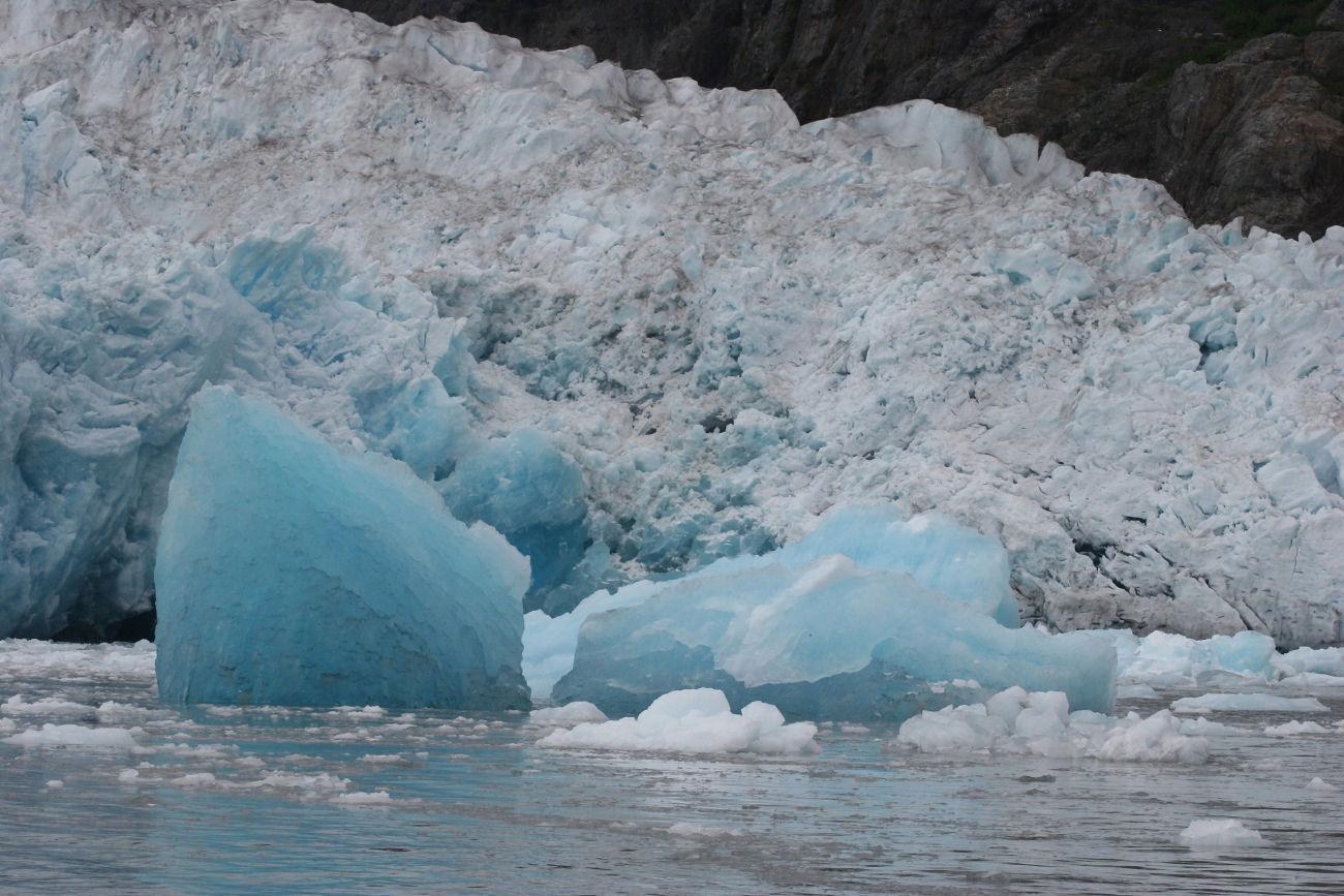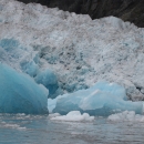 Blue icebergs float away after calving from the Chenega Glacier in Alaska.