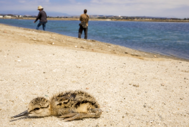 Chick resting in the sand at San Diego Bay National Wildlife Refuge, California.
