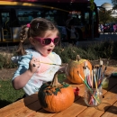 Child painting pumpkins