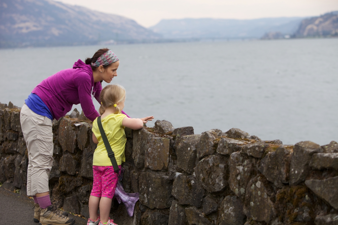 Mother and child enjoy the scenic beauty of the Columbia River. Pacific Northwest Fisheries.