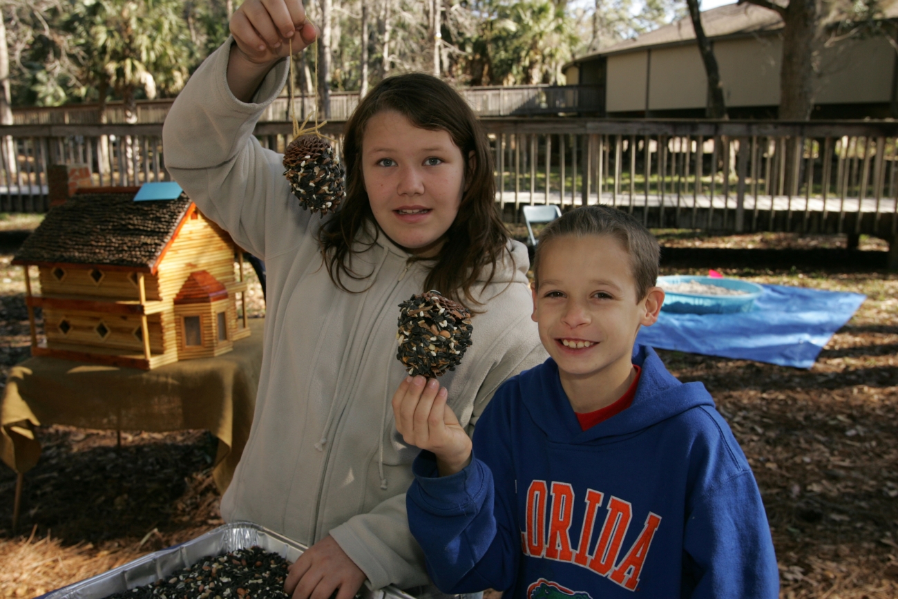 Children showing their new bird feeders from a craft fair at St. Marks National Wildlife Refuge Visitor Center.