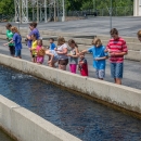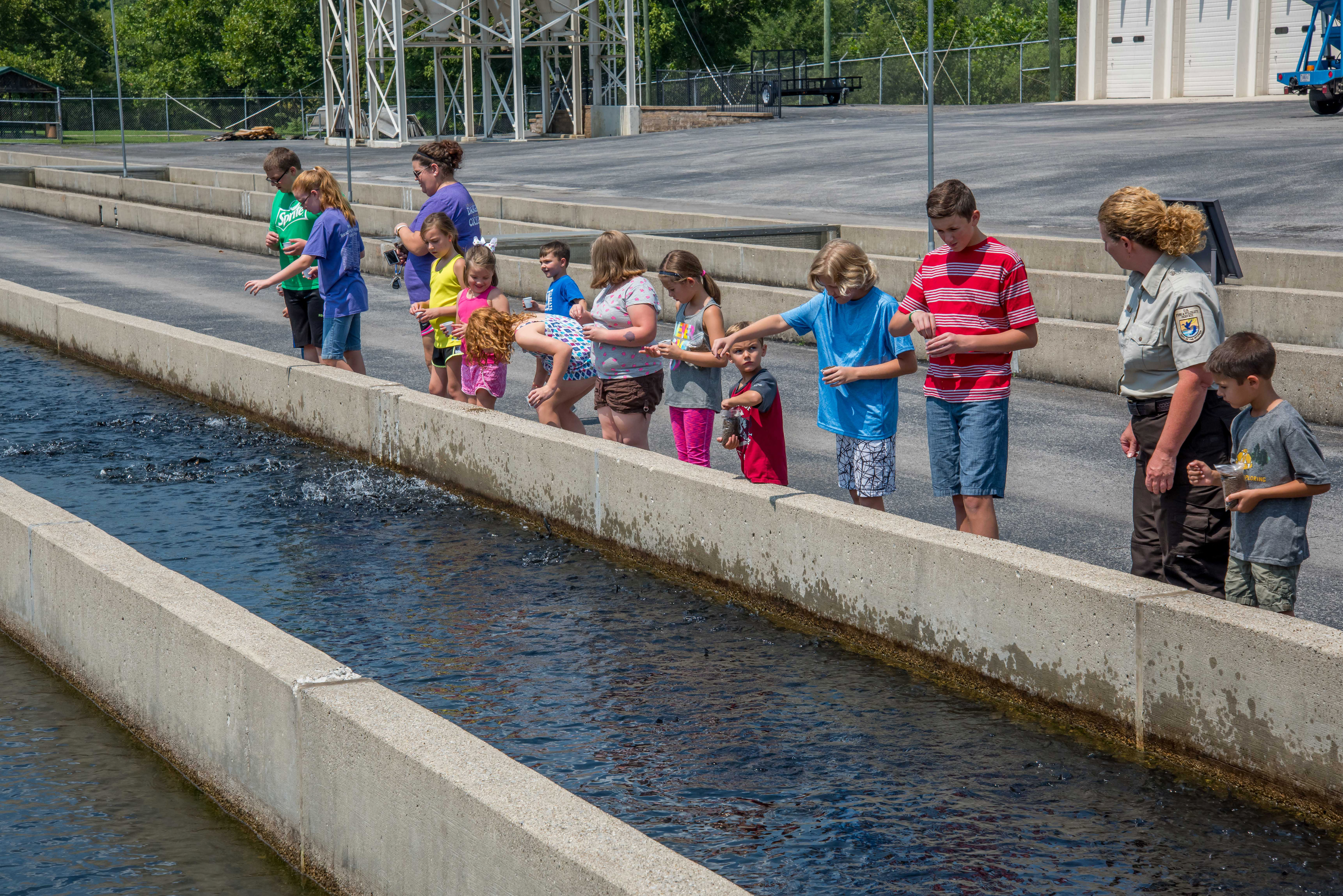 Children feeding fish at raceways