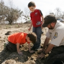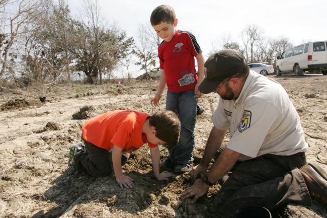Two young boys pitch in with the clean up and replanting efforts due to damage caused by Hurricane Ike.