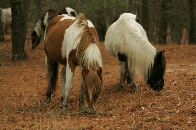 Two herds of Chincoteague ponies graze freely on Assateague Island. Legend has it that the ponies arrived on Chincoteague from a Spanish ship that had run aground during a storm in 1750. Historians believe they are descended from horses brought by settlers in the 1600’s.