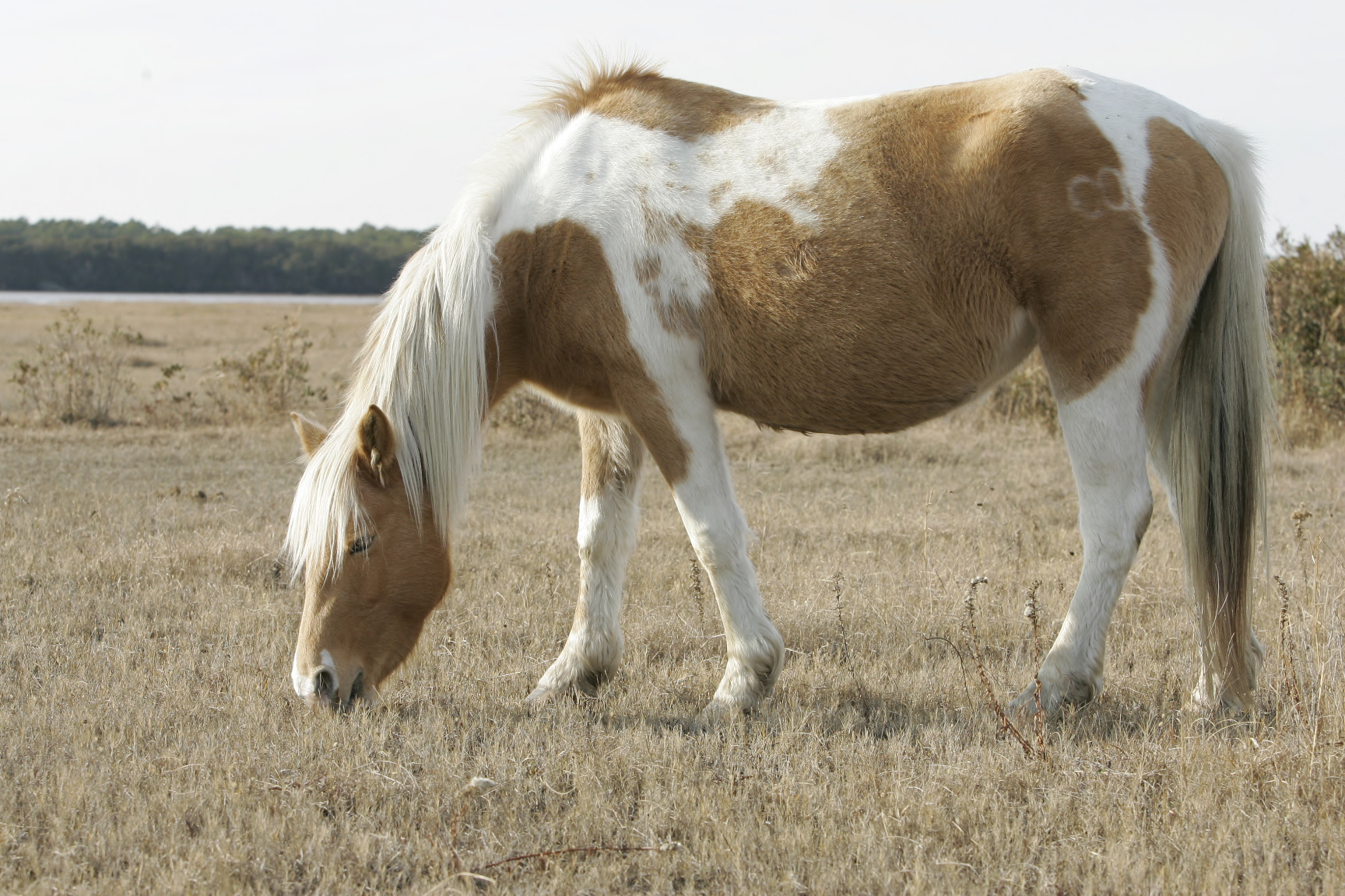 The Chincoteague Pony became its own official registered breed in 1994. The average height of a Chincoteague Pony is between 12 and 13 hands (any horse that stands less than 14 hands is considered a Pony). Chincoteague Ponies are stocky, with short legs, thick manes, and large, round bellies. Though they are named after Chincoteague (the closest populated town) they actually live on Assateague Island, which is an undeveloped National Wildlife Refuge.