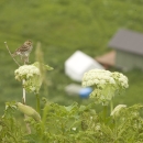 Savannah Sparrow perched on a plant