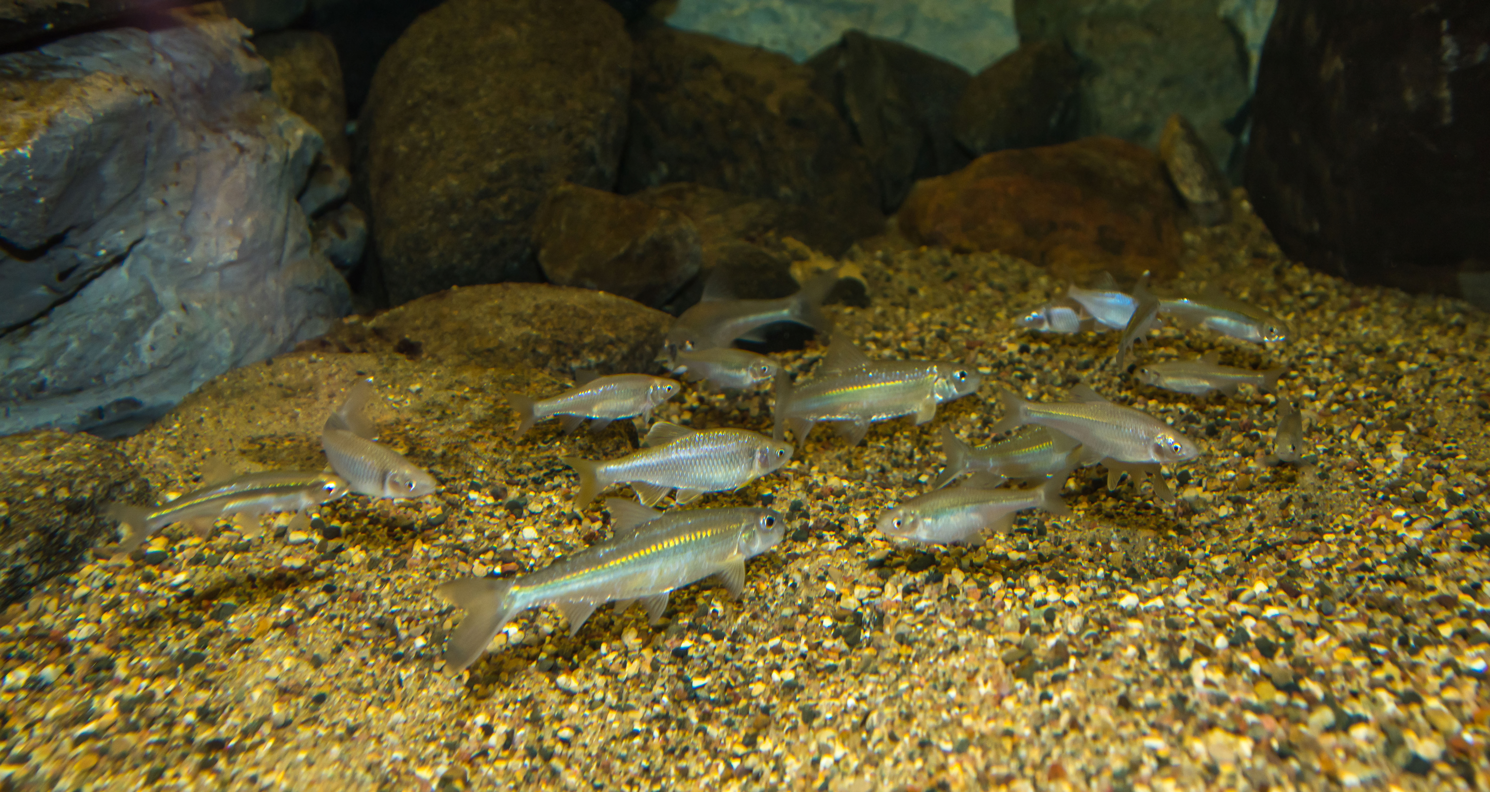Chubs and shiners in aquarium at Gavins Point National Fish Hatchery