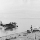 Clarence Rhode beaching U.S. Fish and Wildlife service airplane at Shageluk, Alaska in 1950.