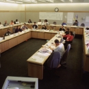 Instructor speaking to students in classroom with u-shaped desk arrangement at the National Conservation Training Center.