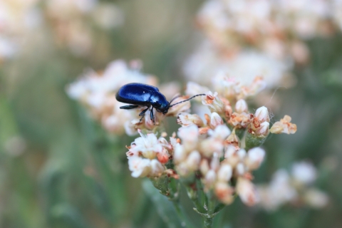 Eriogonum pelinophilum is a low growing, rounded, densely branched subshrub in the buckwheat family (Polygonaceae). It has dark green inrolled leaves that appear needlelike, and clusters of white to cream colored flowers with greenish-red to brownish-red bases and veins at the end of the branches.