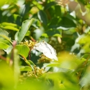 Clodius Parnassian (Parnassius clodius) flying towards vegetation.
