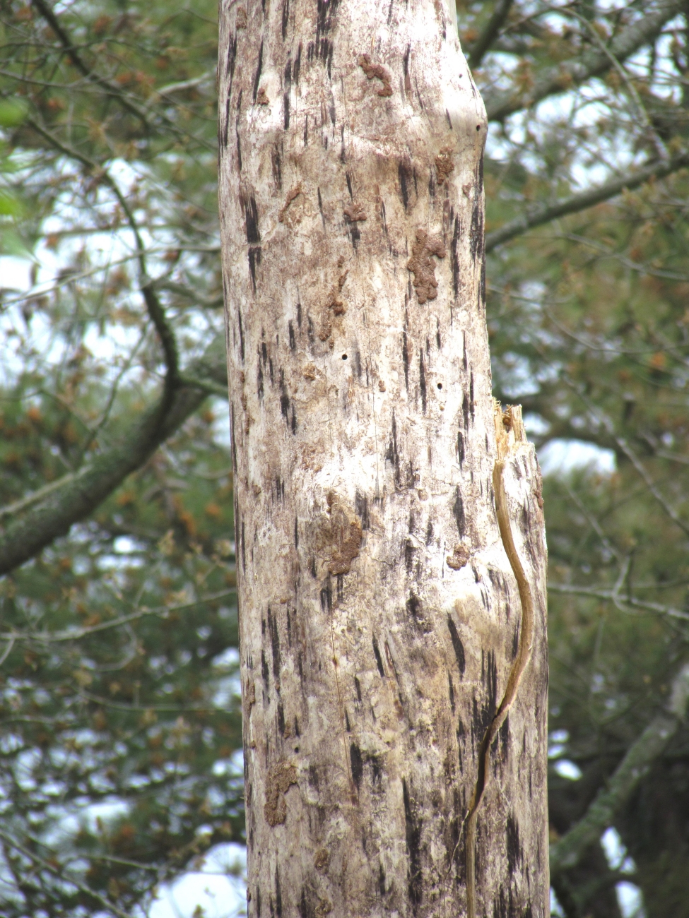 It has been said by many that the native Southern Pine beetle, Dendroctonus frontalis, is one of the most destructive insect pests to pines. Here at Chincoteague National Wildlife Refuge, Loblolly Pine trees are a haven to the Southern Pine beetle for shelter, breeding, nesting, and feeding. These beetles chew and burrow their way through the bark and the inner parts of the tree, killing a healthy tree in a month. Many of the pine trees on Chincoteague National Wildlife Refuge are the perfect habitat for the Southern Pine beetle. Sadly, the tree that allows the beetle to survive will quickly die. A large number of the Loblolly Pine trees, found on Assateague Island are reaching the end of their lifespan and are also affected by salt stress due to sea level rise. Since the trees are already weakening, they make a good starting habitat for the Southern Pine beetle because it is easier to break the tree’s defenses.