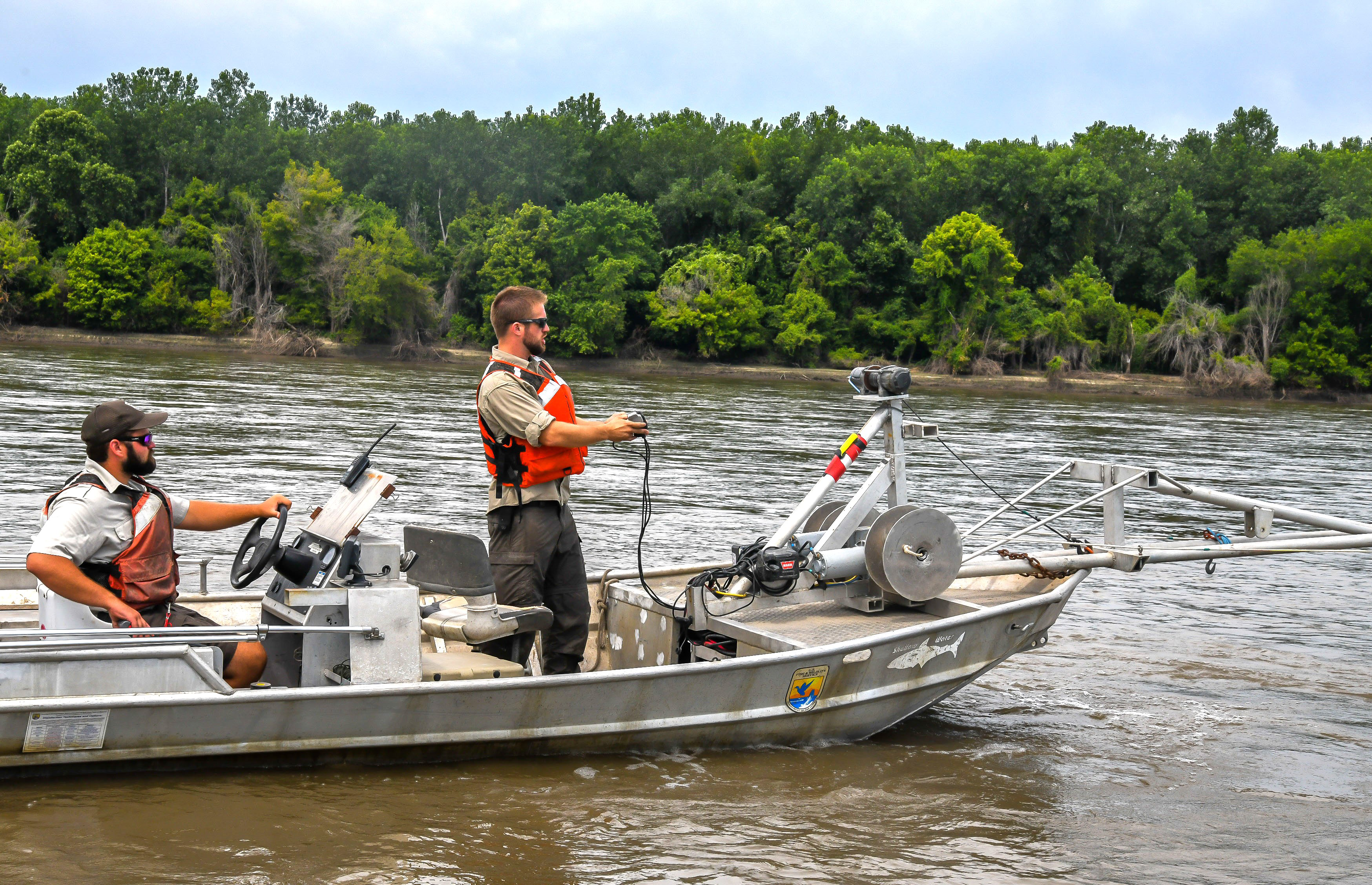 A closer sideview of the crew positioning during sampling.