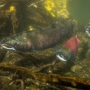 Coho (Oncorhynchus kisutch) and Sockeye salmon (Oncorhynchus nerka) migrate in Russian River at Kenai National Wildlife Refuge in Alaska.