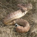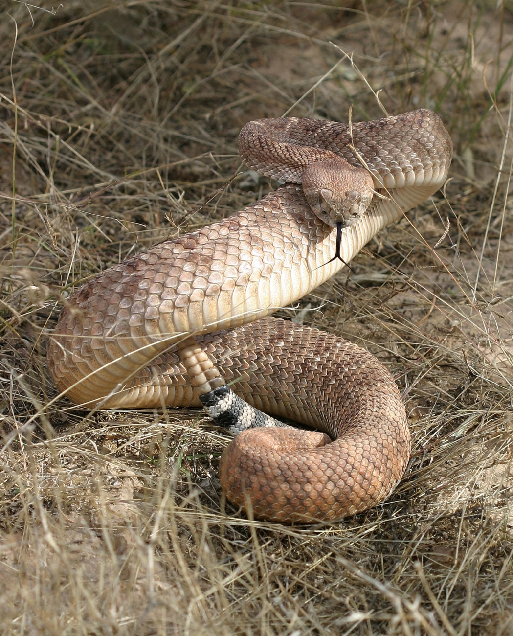 Western Diamondback Rattlesnake coiled to strike At Bosque del Apache National Wildlife Refuge.