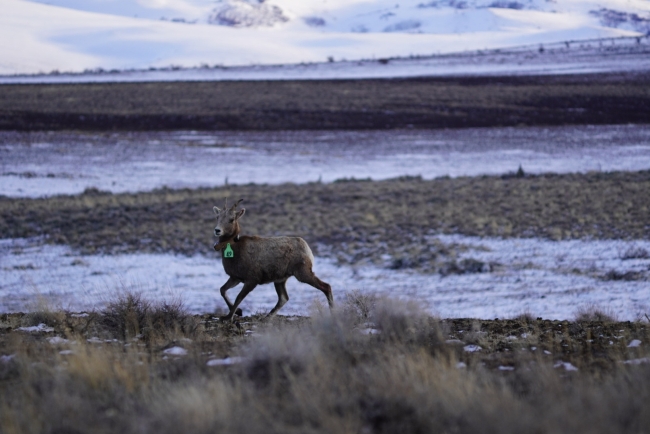A healthy ewe with GPS collar number 49 was safely released and returning home. Photo Credit: USFWS/Roula Loew