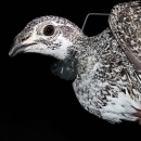 Biologist Kyle Cutting holds a hen sage grouse with antennae collar affixed as part of a research study to learn more about these birds' nesting and migration patterns. Photo by Cortez Rohr/USFWS.