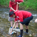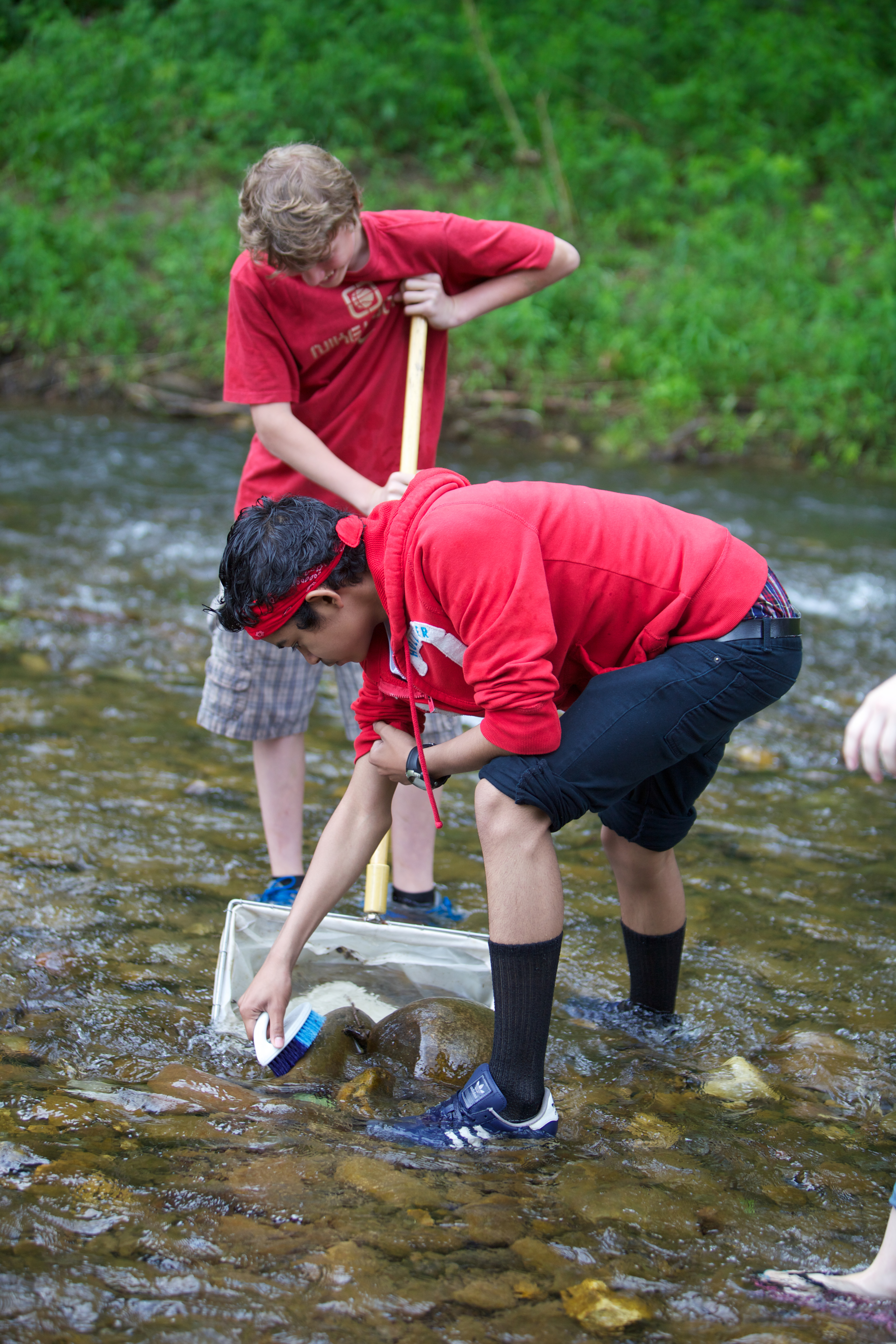 School children test water quality chemistry/survey macroinvertebrates at Seneca Rocks, WV.