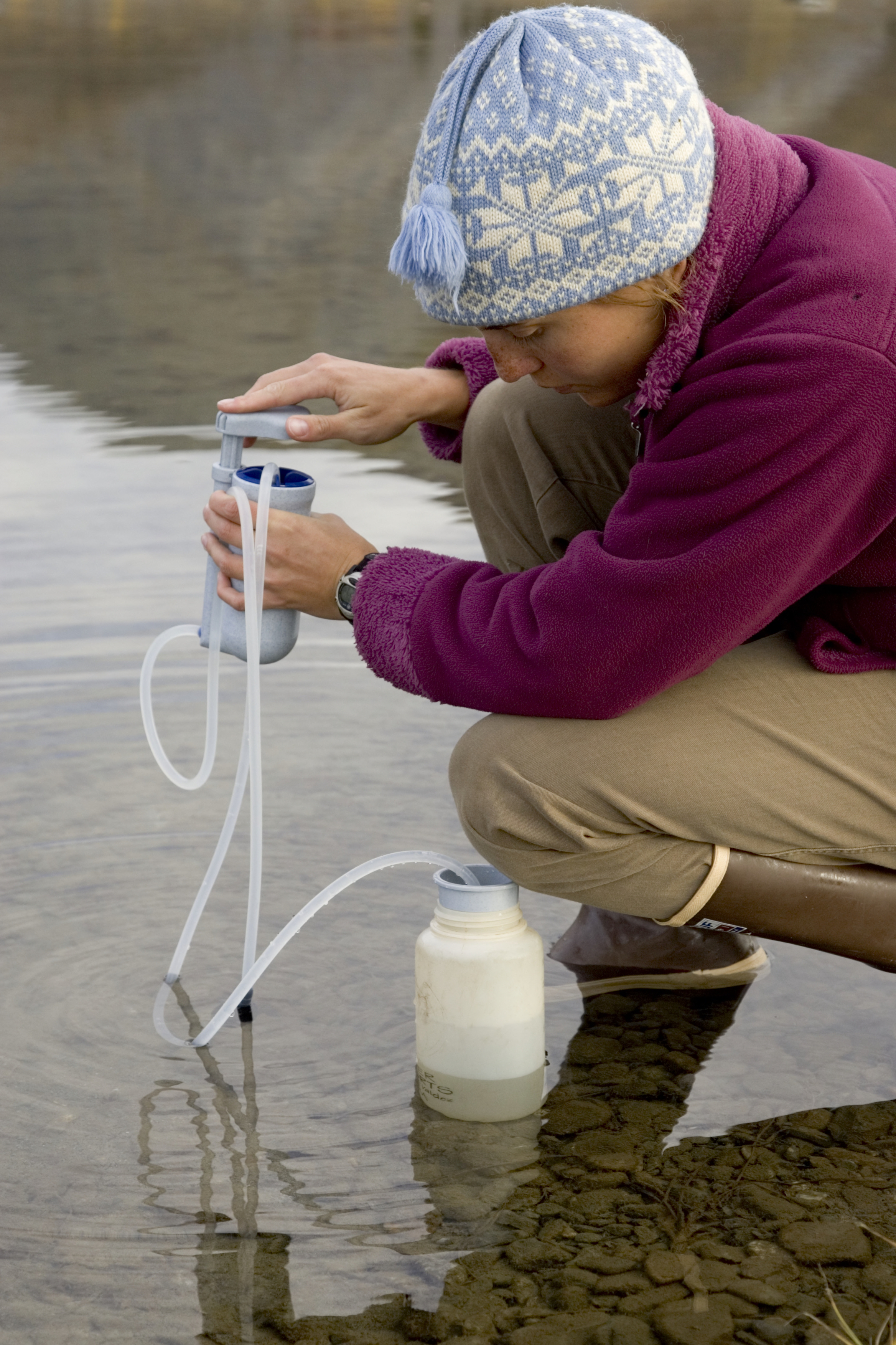 This picture shows a women collecting water at the refuge. The Arctic National Wildlife Refuge, a vast and beautiful wilderness, is an intact continuum of six different ecological zones spanning some 200 miles north to south. Such a diverse spectrum of habitats and associated fish and wildlife populations within a single conservation area is unparalleled in the circumpolar north.