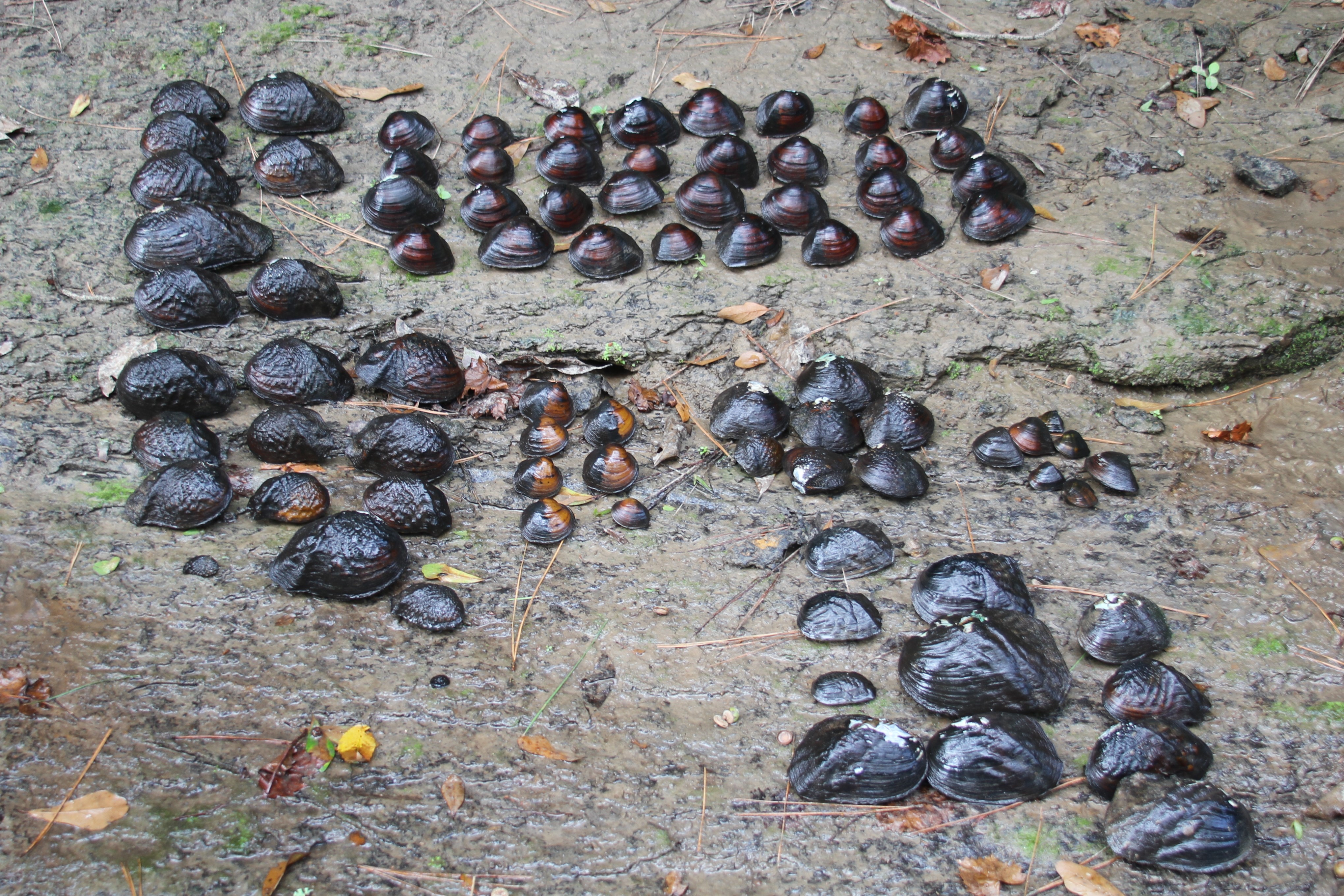An assortment of freshwater mussels collected by the Sabine River Authority during a sampling trip to Lake Fork Creek, a tributary of the Sabine River, on Sept. 17, 2020. (Aubry Buzek/USFWS)