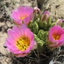 The Colorado hookless cactus is a barrel shaped cactus that ranges from 1.2 to 4.8 inches (in.) (3 to 12 centimeters (cm)) tall, with exceptional plants up to 12 in. (30 cm) tall. Stems range from 1.6 to 3.6 in. (4 to 9 cm) in diameter. The stems have 8 to 15 (typically 12 or 13) ribs that extend from the ground to the tip of the plant. Along the ribs are areoles (small, cushion-like areas) with hooked spines radiating out (Heil and Porter 2004). There are two types of spines, radial and central, defined by the size and position on the plant (see Figure 1) (74 FR 47112, September 15, 2009). The 2 to 12 radial spines are located around the margin of the areole, extending in a plane parallel to the body of the plant. The radial spines are white or gray to light brown. They are up to 0.67 in. (17 millimeters (mm)) long, and less than 0.04 in. (1 mm) in diameter. The one to five central spines (usually three) are 0.5 to 2.0 in. (12 to 50 mm) long, are generally longer than radial spines, and extend from the center of the areole. The central spines include abaxial and lateral forms. Abaxial spines are typically single, point toward the top of the plant, and are noticeably bent at the tip at an angle usually less than 90 degrees. Lateral spines are usually present in pairs on either side of the abaxial spine, but are more or less straight and diverge from the abaxial spine at an acute angle (usually 20 to 50 degrees).The flowers are usually funnel-shaped, but sometimes bell-shaped. They usually have pink to violet tepals (petal-like flower parts not differentiated into petals and sepals) with yellow stamens (the male reproductive organ of the flower), and are 1.2 to 2.4 in. (3 to 6 cm) long and 1.2 to 2 in. (3 to 5 cm) in diameter (74 FR 47112, September 15, 2009). The fruit is short, barrel-shaped 0.31 to 0.47 in. (8 to 12 mm) wide, and 0.35 to 1.2 in. (9 to 30 mm) long.
