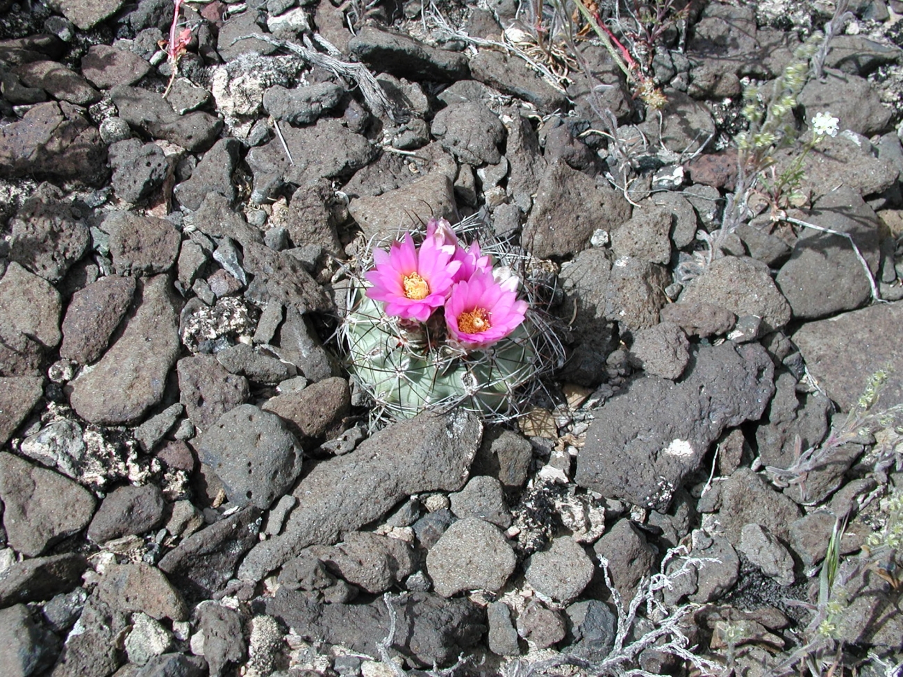 Colorado hookless cactus (Sclerocactus glaucus) is a barrel-shaped cactus that ranges from 1.5 to 7 inches. The stems typically have 12 to 15 ribs that extend from the ground to the tip of the plant. The funnel-shaped flowers usually have pink to violet tepals with yellow stamens. The fruit is short, barrel-shaped, reddish or reddish grey when ripe. Colorado hookless cactus are generally found on coarse soils derived from cobble and gravel river and stream terrace deposits, or rocky surfaces on mesa slopes at 1,350 to 1,900 meters in elevation. At the time of the original listing of the Colorado hookless cactus complex, ongoing and foreseeable threats included mineral and energy development, illegal collection, recreational off-road vehicle use, and grazing. The cactus is listed as threatened.