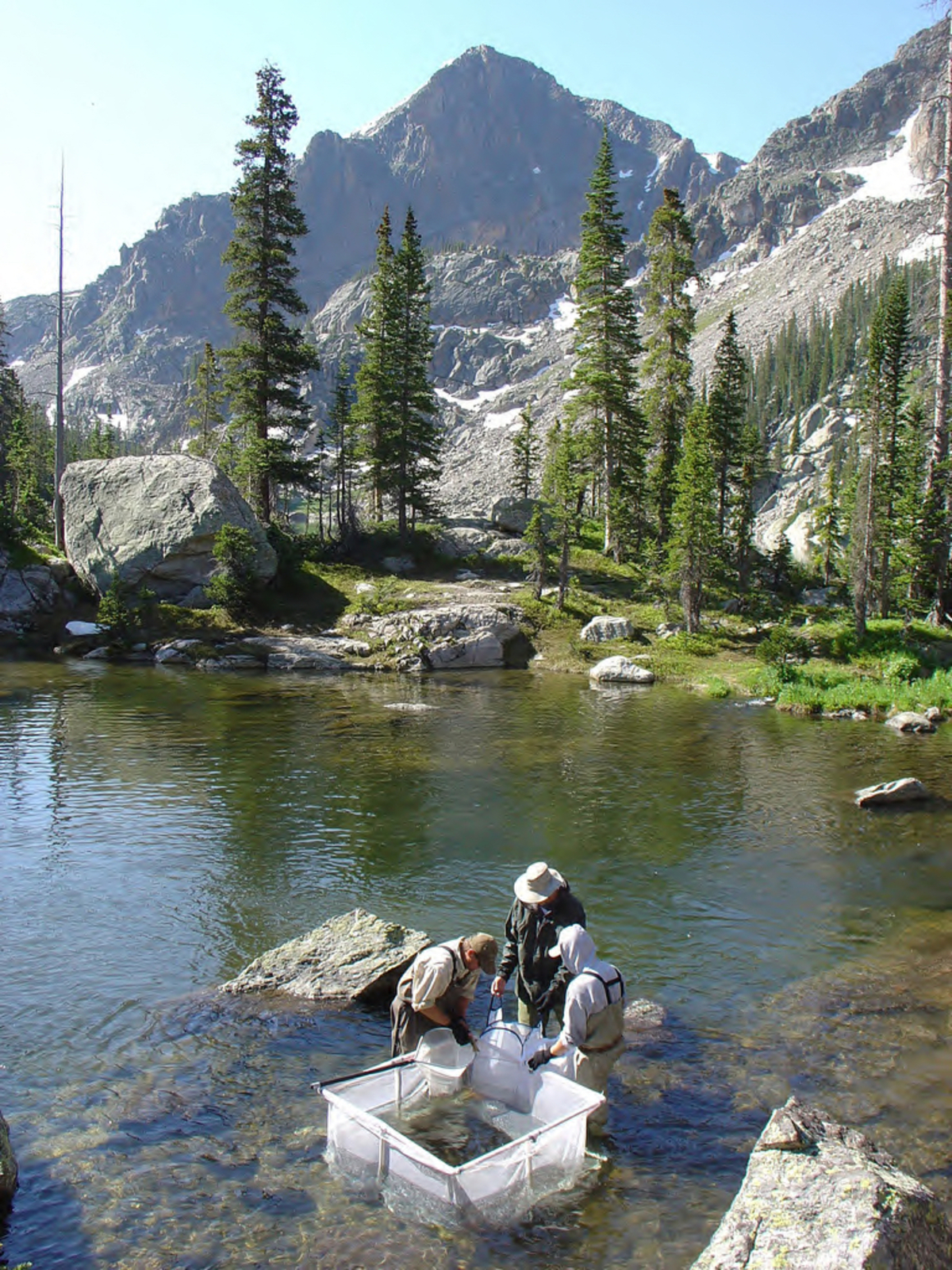 Fish biologists with Colorado Division of Wildlife and the USFWS's Colorado Fish and Wildlife Conservation Office collect cutthroat trout from Lake Nanita in Rocky Mountain National Park. Image submitted by USFWS Headquarters/Flickr.