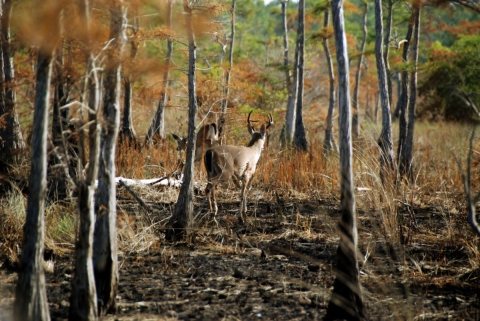 The Columbian white-tailed deer was federally listed as endangered in 1968, at which time only a small population was known to survive on islands and a small area of mainland in Washington along the lower Columbia River. In 1978, a small population of Columbian white-tailed deer was identified in Douglas County, in Southwest Oregon, and subsequently listed as endangered. A recovery plan was published in 1983. Since then, the Douglas County population has rebounded and was delisted in July 2003. Image taken from USFWS Pacific Region Flickr page.