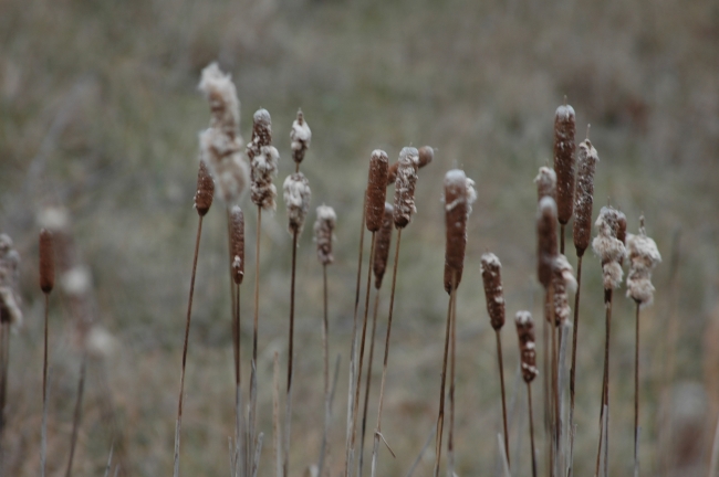 Cattails are beginning to open and spread fluffy seeds.