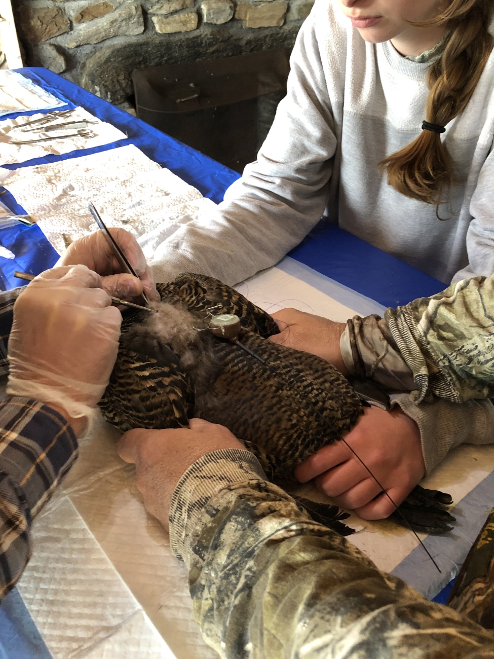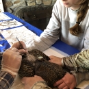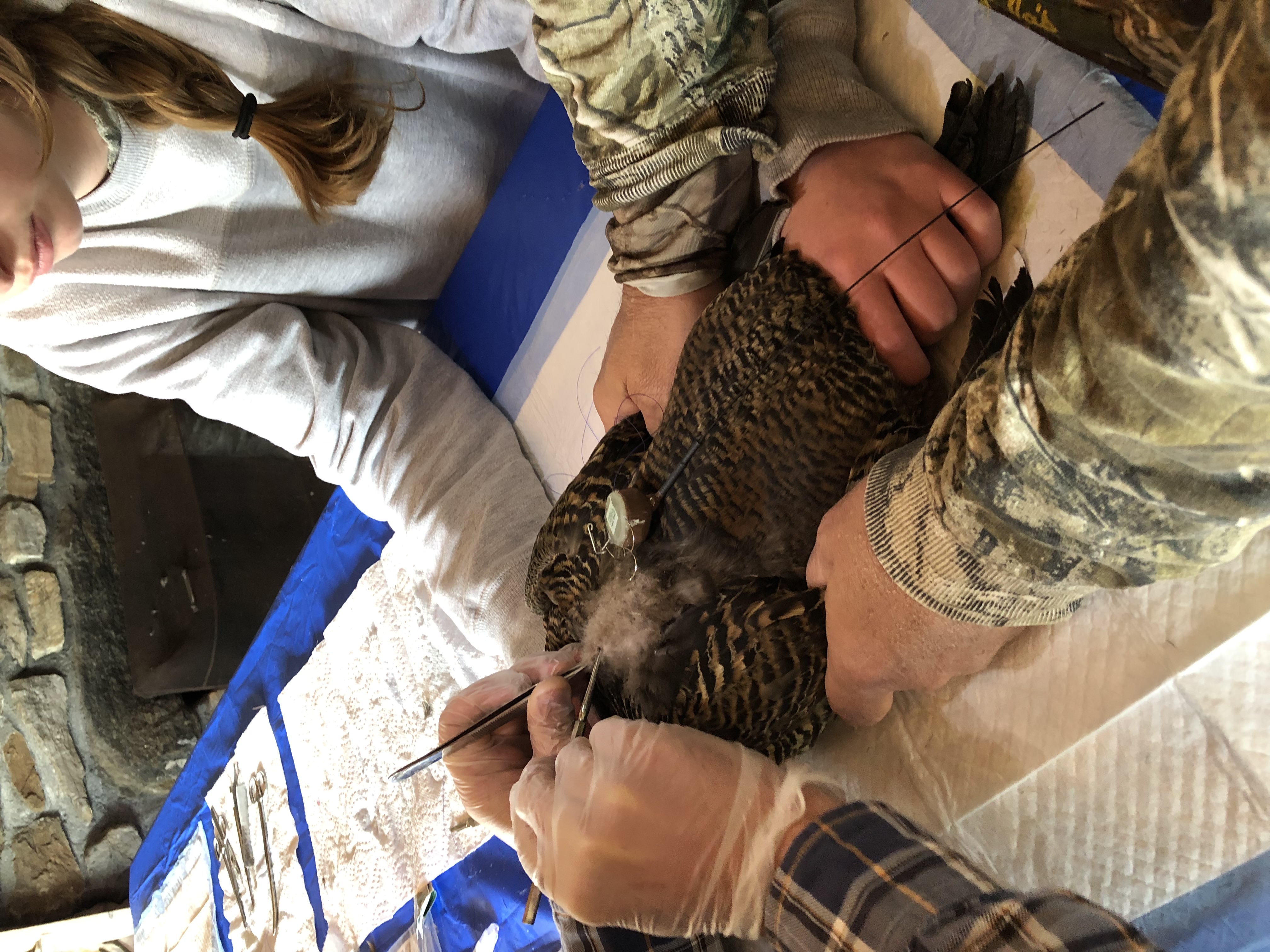 Telemetry radio being attached to common eider hen, Flag Island, Casco Bay, Maine.
