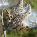 A common milkweed seed pod releases seeds.