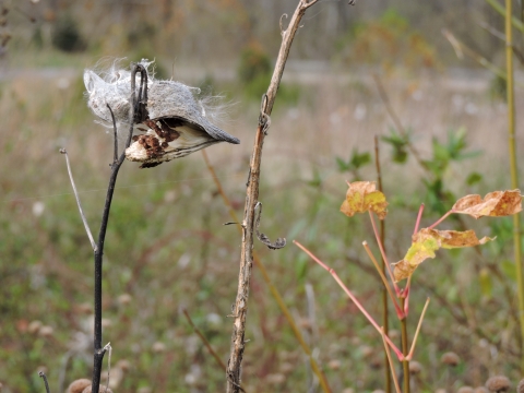 Fluffy Common milkweed seed pods.