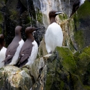 Common murres on a cliff