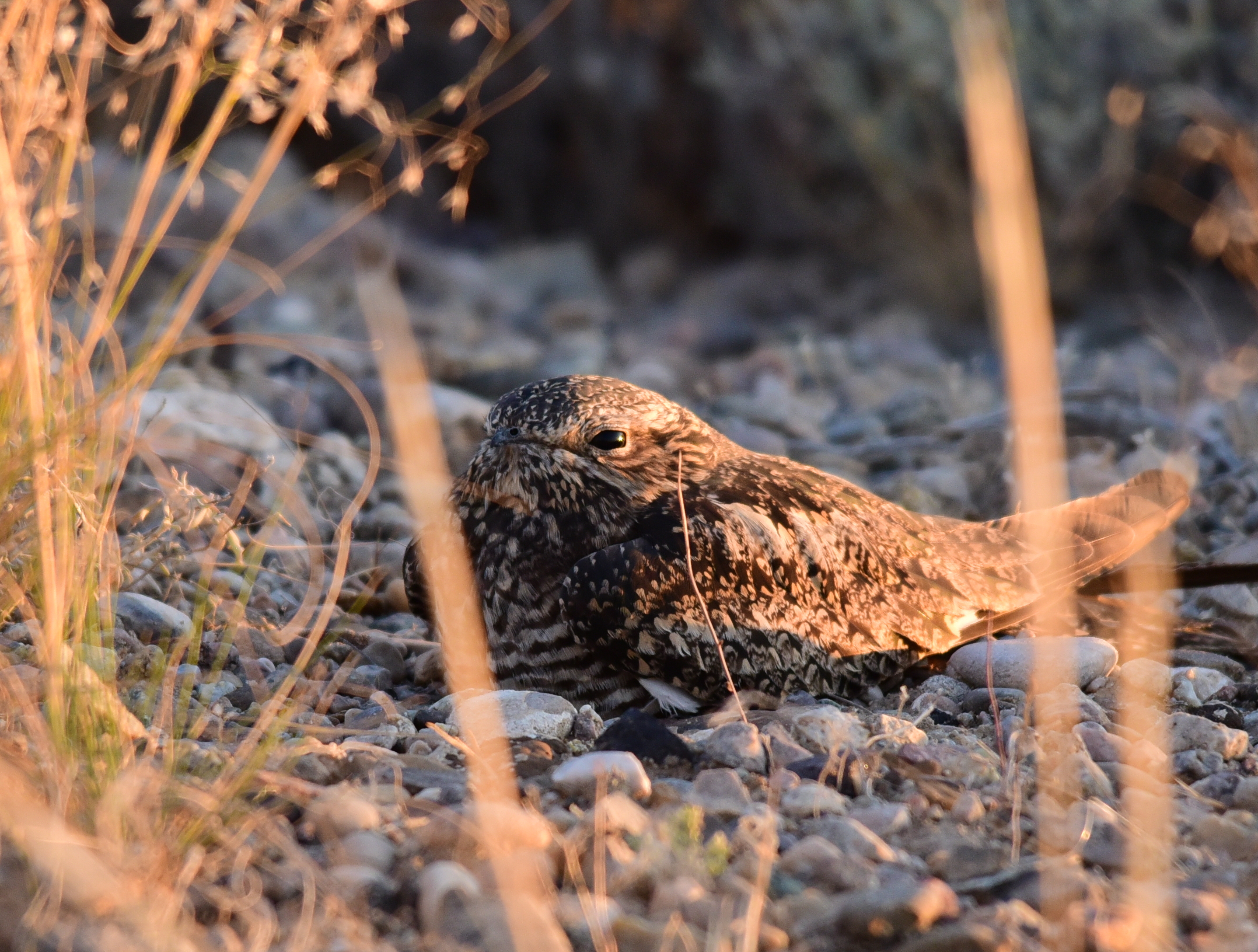 A common nighthawk at Seedskadee National Wildlife Refuge in Wyoming takes a break from the evening hunt for flying insects. Nighthawks are commonly snotted at the refuge during July and August, with abundant flying insects along the river corridor and good nesting habitat in the adjacent sage steppe. In late August, nighthawks begin to gather in large groups to feed heavily along the river and wetlands, before departing en masse. Common nighthawks travel one of the longest migration routes of any North American bird. Most travel over land through Mexico and Central America to reach their wintering grounds in southern South America.