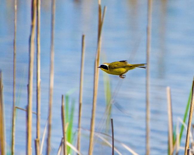 A common yellowthroat soars over the waters found at William L. Finley National Wildlife Refuge.